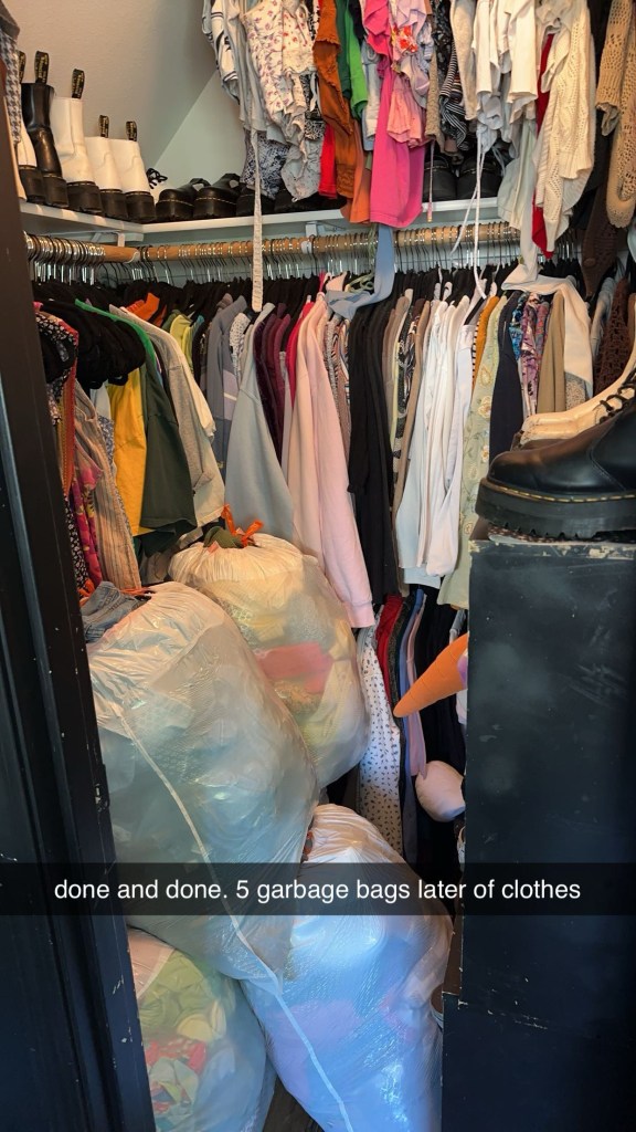 Here’s a look at my closet from a while back, during one of my many attempts to declutter. At first glance, it might look like a productive moment, and to some extent, it was. I did manage to get rid of a good amount of clothes, filling bags with items that no longer “sparked joy.”